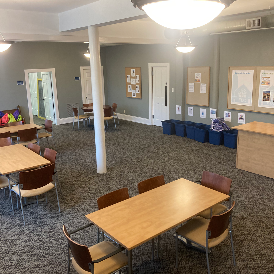 Welcome to our vibrant Community Room at First Lutheran! This dynamic space is designed to bring people together for a wide range of activities and events.